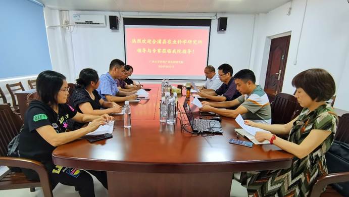 8月1日,合浦县农业科学研究所所长廖琦一行5人到我院开展项目合作交流,并就合浦石湾镇石湾村牧草种植和秸秆饲料化利用、合浦县经济林套种百香果、牧草养鹅、农业绿色发展专题培训等4个项目达成共识。党委书记何龙飞,院长司红彬出席交流会。
