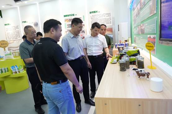 邹庆浩副局长(右三)在产业示范展厅察看草产业示范情况,了解学校草业基地建设规划