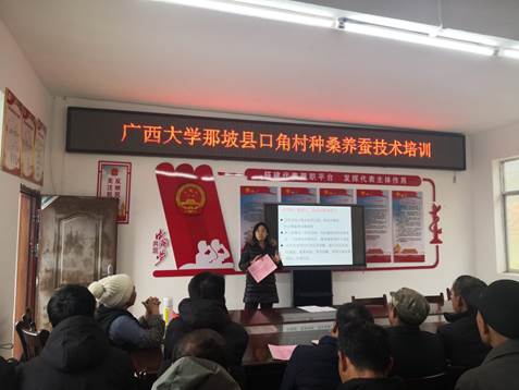 2024年1月17日,由beat365手机版官网入口农牧产业发展研究院桑蚕产业团长梁湘博士,联合广西蚕业技术推广站推广科贾雪峰科长、百色市农业农村局蚕业技术指导站暨国家蚕桑产业技术体系百色综合试验站文柳璎站长,以及那坡农业农村局蚕业站李勤英站长等多名区、市、县级的蚕业技术专家,组团到beat365手机版官网入口那坡帮扶村口角村开展产业调研与技术培训。
