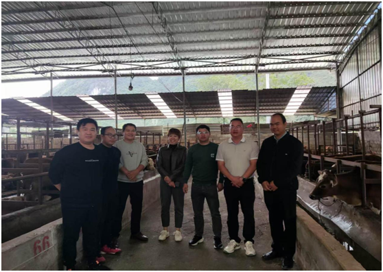 随后,团队又来到都安金报种养专业合作社养牛场。在养牛场,团队成员仔细观察了牛的生长状况,询问了饲料供应、疫病防治等方面的情况。针对养牛场在粪便处理和资源化利用方面存在的问题,提出了一系列环保型解决方案,建议养牛场采用先进的粪便处理设备,将牛粪转化为有机肥料,实现资源的循环利用,既保护了环境,又能增加额外的经济收益。