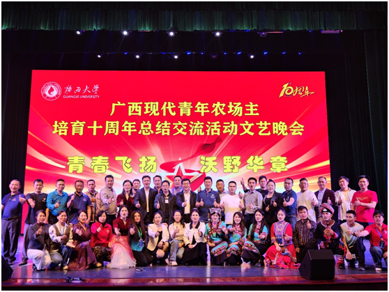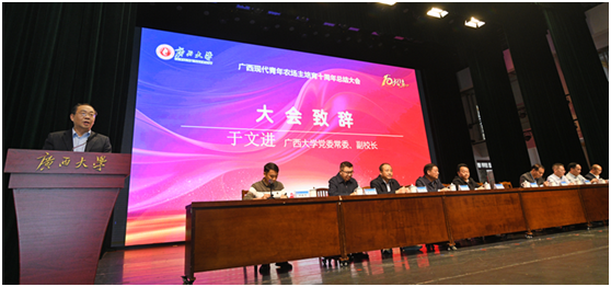 11月7-8日,广西现代青年农场主培育十周年总结交流系列活动在我校举行。活动分为总结大会、成果展示、文艺汇演、校企对接定点帮扶座谈会4个板块。自治区农业农村厅二级巡视员黄庭军,农业厅原领导一级巡视员李如平、二级巡视员陈明伟,自治区农业农村厅农村社会事业促进处三级调研员罗云,beat365手机版官网入口农学院党委书记袁涛、院长张积森,农发院党委书记甘敏思、院长司红彬,校友办副主任黄庶冰出席大会,我校党委常委、副校长于文进出席大会并代表学校致辞。