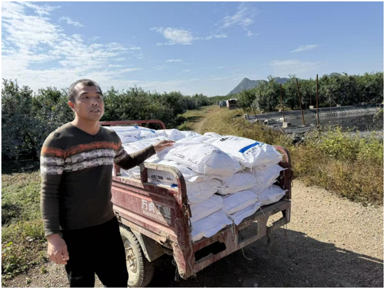 科技服务落地,需要配套支持。活动的另一重要环节,是向示范户免费发放了价值九千余元的专用化肥。这份“科技大礼包”并非简单的物资赠与,而是前期科技服务的延伸和巩固,确保了技术措施能及时、有效地落地。活动的最后环节举行了简短的农资捐赠仪式。服务团队向示范基地的种植户免费发放了总价值达九千余元的优质化肥,切实缓解了农户的生产投入压力。接收到物资的柑橘示范户脸上洋溢着欣慰的笑容,并对科技服务团队表达了诚挚的谢意。服务团队深切感受到科技服务实实在在的价值。此举不仅减轻了农户的生产投入负担,更极大地增强了他们依靠科技管好果园、提质增效的信心与决心。