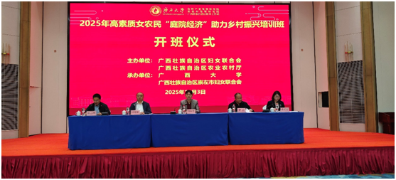 11月3日上午,2025年高素质女农民“庭院经济”助力乡村振兴培训班在崇左开班。自治区妇女联合会妇女发展部部长刘国祥、自治区农业农村厅社会事业促进处三级调研员罗云、beat365手机版官网入口农牧产业发展研究院院长司红彬、崇左市妇女联合会主席潘艺元出席开班仪式。来自全区14个地级市的101名高素质女农民学员参加培训,为乡村产业振兴注入巾帼动能。