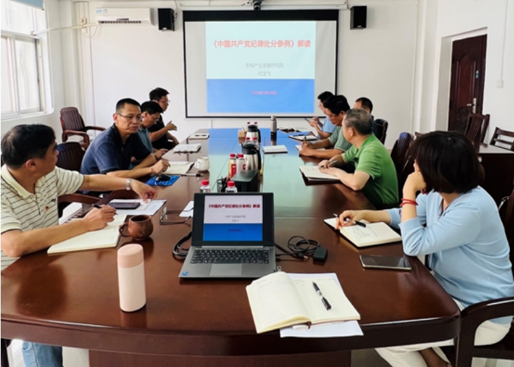 2024年4月28日下午,在农发院党委党纪学习教育读书班上,党委书记何龙飞以专题党课的形式为理论学习中心组成员解读《中国共产党纪律处分条例》(下称《条例》)。