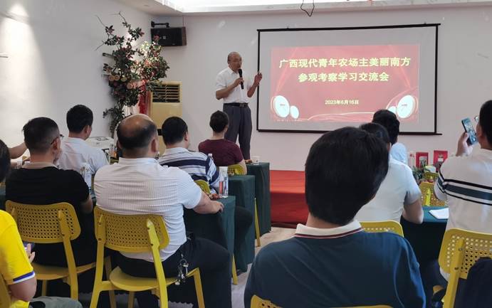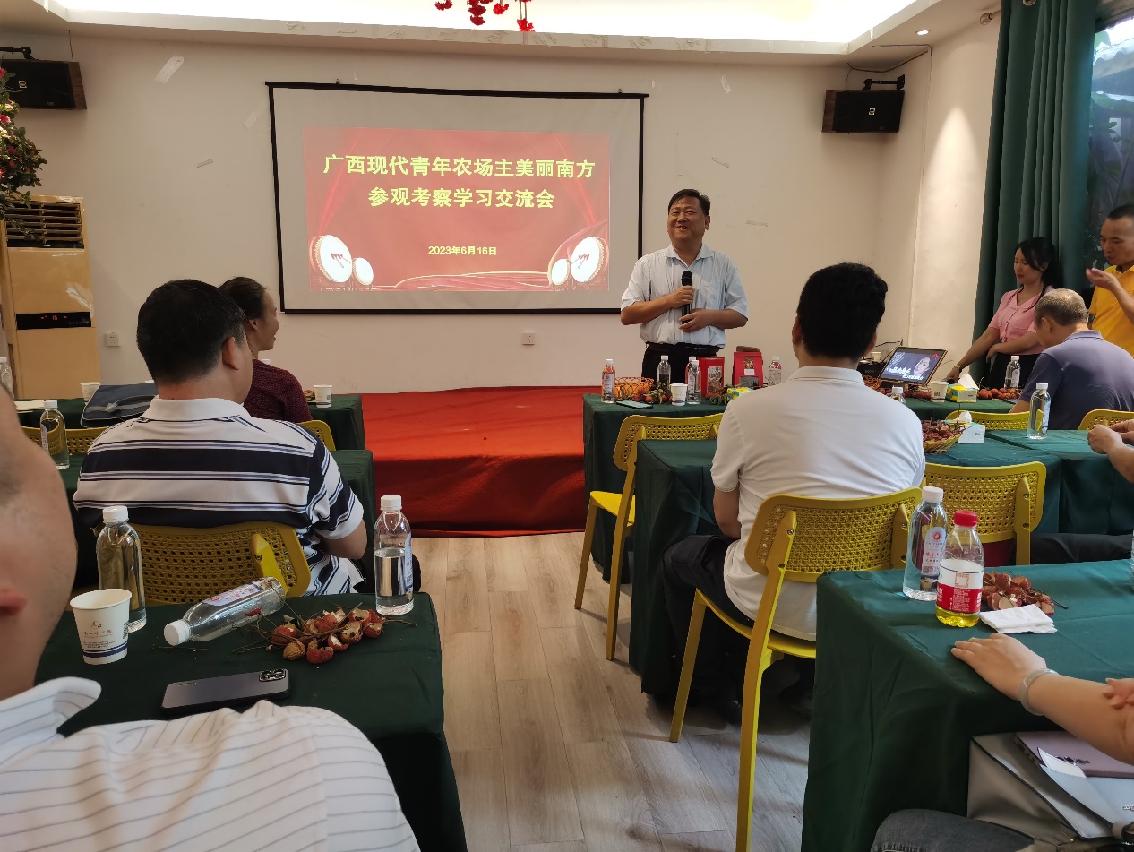 为了学习贯彻习近平新时代中国特色社会主义思想主题教育精神,通过回访广西现代青年农场主,搭建高校赋能的广西现代青年农场主平台,推动农场主高质量发展。6月16日,副院长司红彬(主持行政全面工作)带队到美丽南方同36名广西现代青年农场主座谈交流。