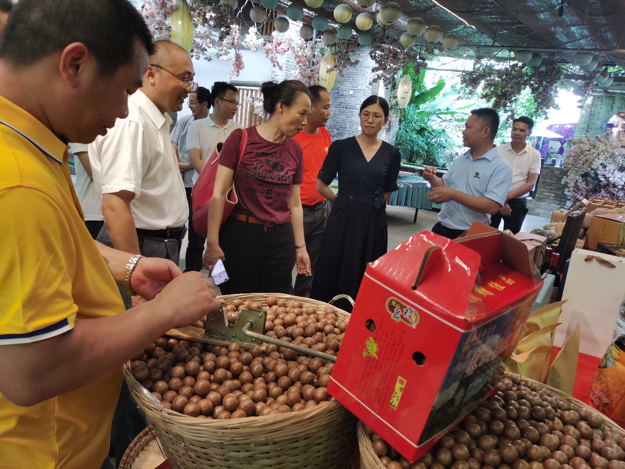 图6 左明、司红彬等领导老师参观农场主的产品展示