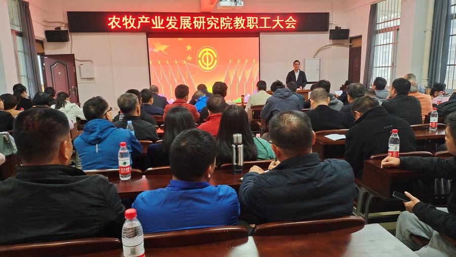 最后,院党委书记何龙飞讲话。他充分肯定了第一届分工会的各项工作,对大家的辛勤努力表示感谢。并借用郑板桥的《竹石》一诗,与大家共勉,希望农发院全体教职工能够像在石缝中的竹子一样刚强勇敢、积极主动。也希望新一届分工会能够继续秉承"为职工办实事"的服务理念,不断加强学习,增进同教职工的交流,发挥我院优势特色,努力把工会组织建设成为大家信赖的“职工之家”,为农发院高质量发展贡献力量。